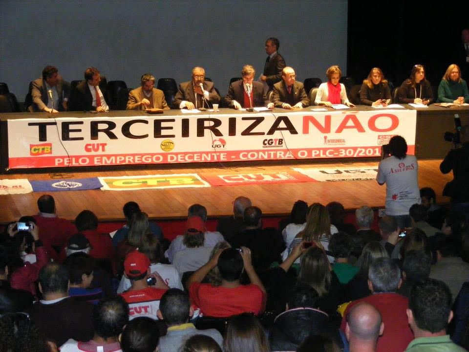Projeto da terceirização PLC 30 é debatido em audiência pública no Rio Grande do Sul - 25/06/2015 Publicado em: 29/06/2015 • Última modificação: 29/06/2015 - 16:29 Publicado em: 29/06/2015 Última modificação: 29/06/2015 - 16:29 Enviar por e-mail A+ +/- A- Compartilhe Facebook Twitter Google Plus Whatsapp